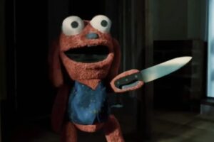 The charm of Benny Loves You is that the cheerful, innocent-looking, sweet-voiced Benny, with his pre-recorded catchphrases and bouncy movement, doesn’t realize he’s a psycho – he just really wants to be with his human, Jack. Imagine The Muppets’ Tickle Me Elmo with a maniacal streak. The result is some hilarious and twisted laughs punctuated with a surprising amount of gore.