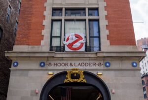 • The exterior shots of the firehouse were filmed at Hook & Ladder 8, an active firehouse in New York City’s Tribeca neighborhood. A replica of the Ghostbusters sign hangs outside year-round.