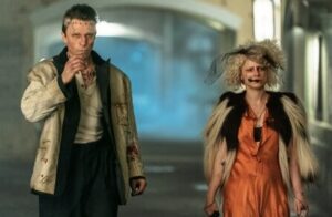 Among the few dozen movies with exclamation points in the title, The Bride! is more like the disastrous mother! than the iconic classic Hello, Dolly! Initially a messy homage to feminism – there is even a “me too” shout out at one point – Gyllenhaal’s oh-so-artsy The Bride! strangely changes course after a few minutes into a fever dream mashup of Bonnie & Clyde and Joker: Folie a Deux, with violent killings, the super random appearance of Peter Sarsgaard and Penélope Cruz as the respective detective and his way smarter assistant, and a convoluted story about the main character’s prior life as a police informant immersed in a world of mobsters and dirty cops.